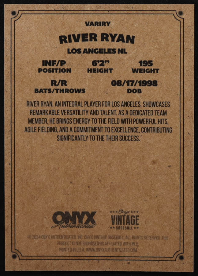 River Ryan 2024 Onyx Vintage Baseball Signatures #VARIRY RC