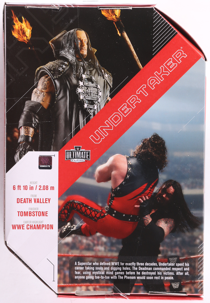 WWE Ultimate Edition action figure measures approximately 8" in height. The packaging has been hand-signed by Undertaker (HOF). See photos for more details.