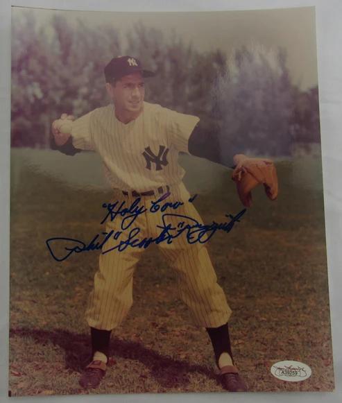 Phil Rizzuto Signed Yankees 8x10 Photo Inscribed "Scooter" & "Holy Cow" (JSA)
