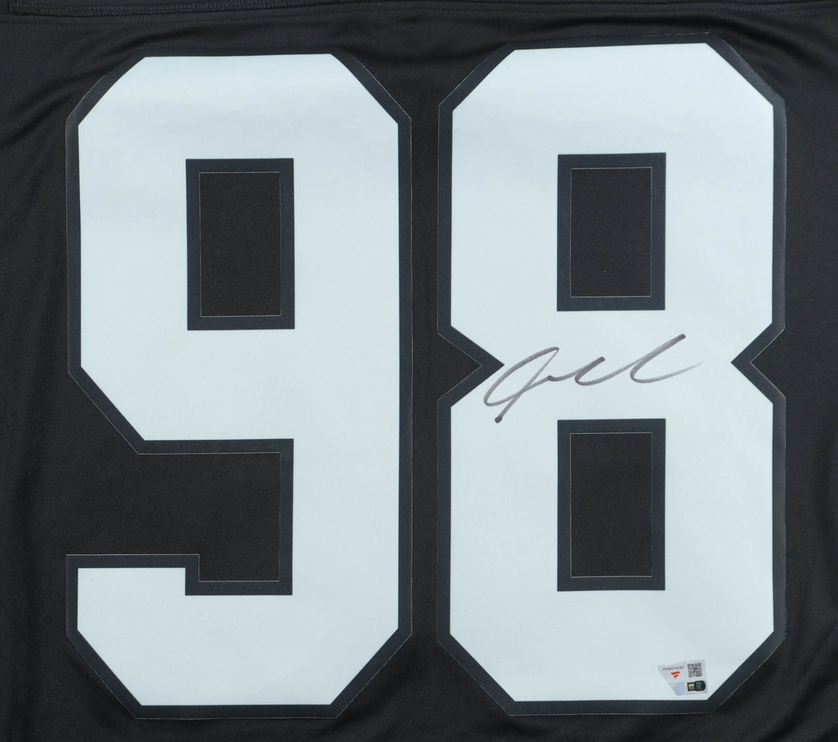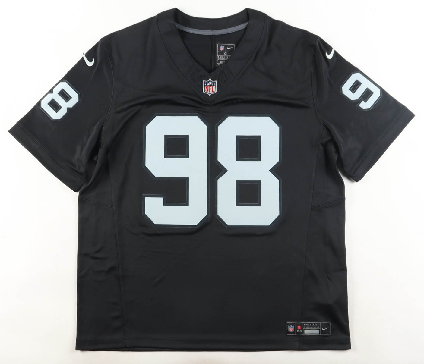 Nike authentic jersey with everything pressed on, size XL. Hand-signed by Maxx Crosby (Las Vegas Raiders).