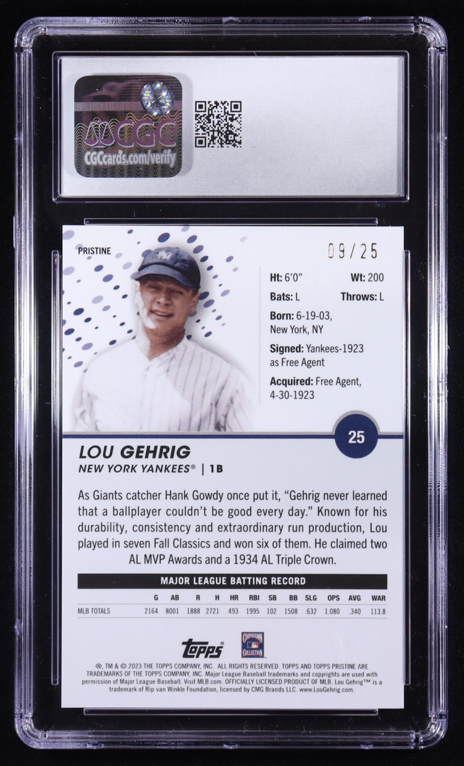 Lou Gehrig 2023 Topps Pristine Orange Pristine Refractors #25 #09/25 (CGC 10)