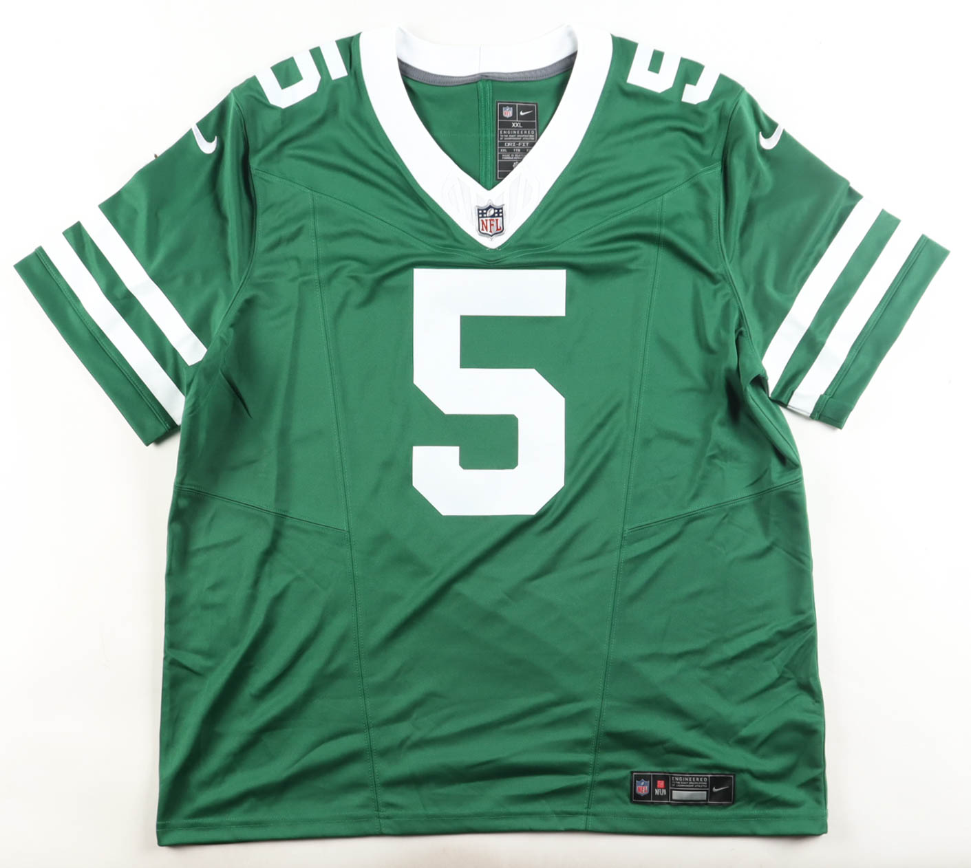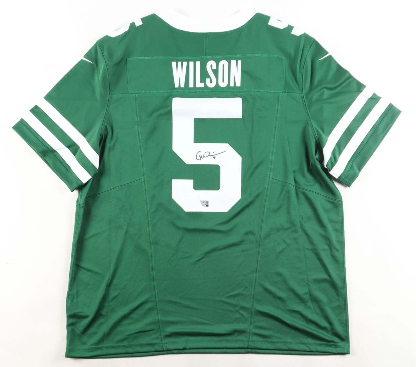 Nike jersey. Everything pressed on, size XXL. Hand-signed by Garrett Wilson (New York Jets).