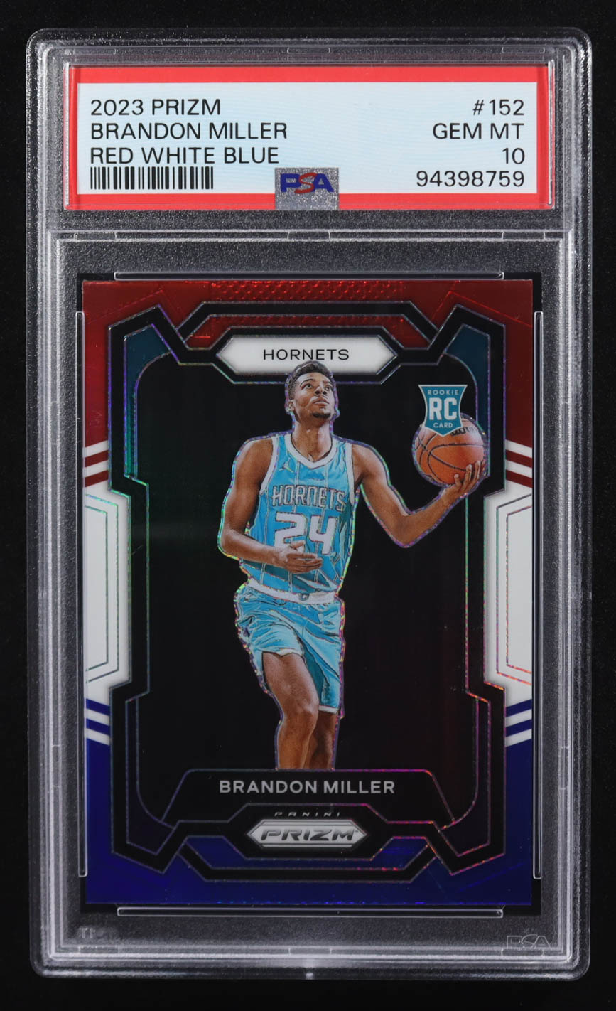 Brandon Miller 2023-24 Panini Prizm Prizms Red White and Blue #152 RC (PSA 10)