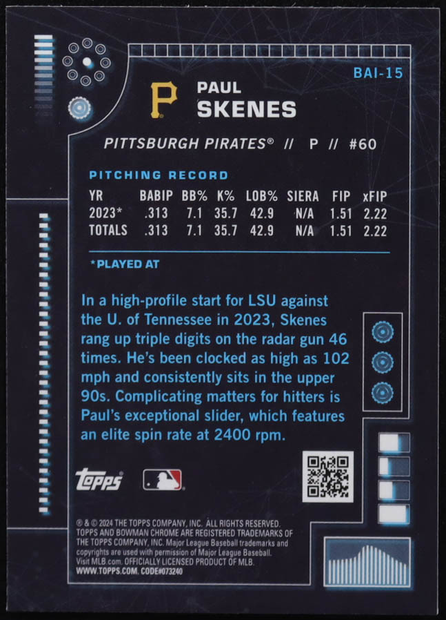 Paul Skenes 2024 Bowman Chrome Bowman AI #BAI15 RC