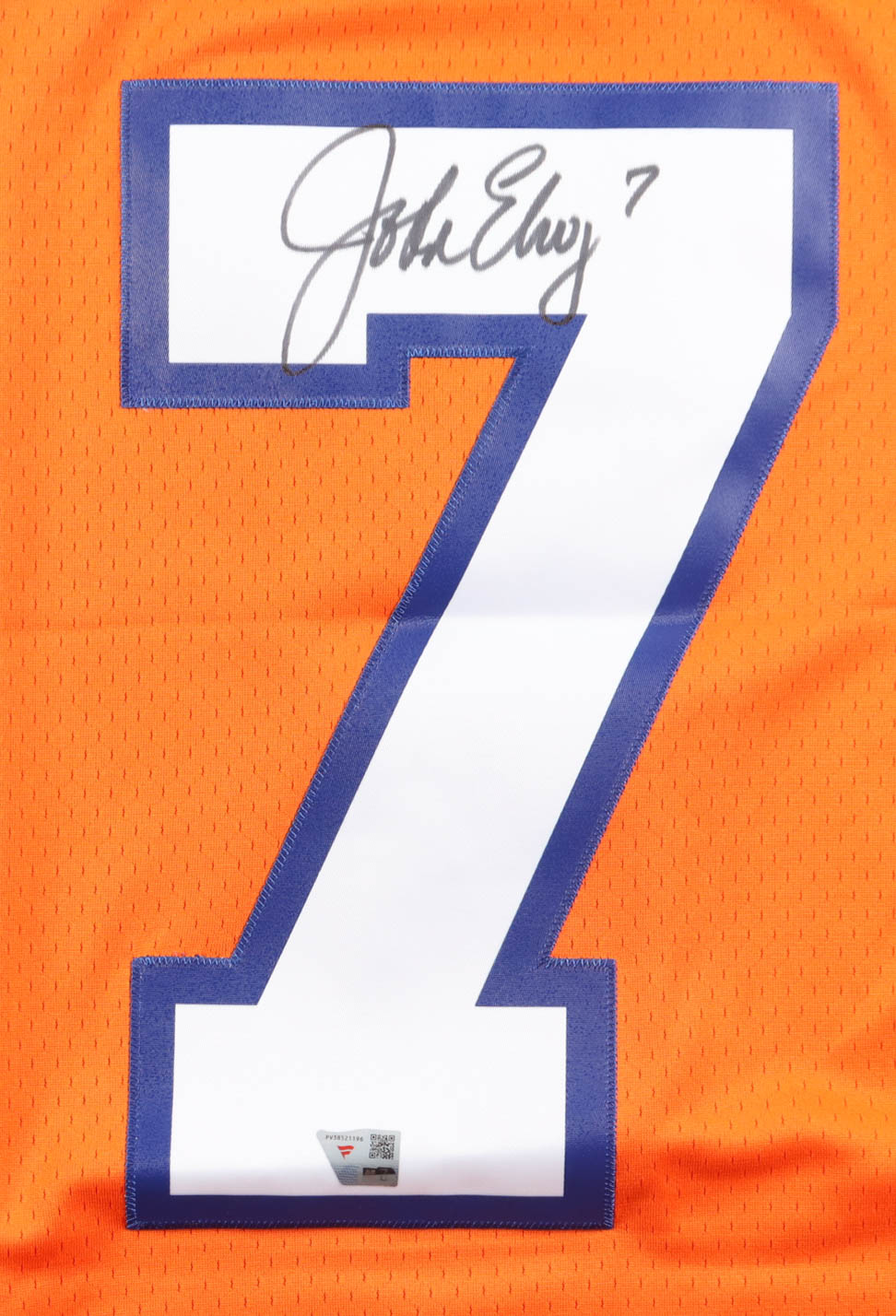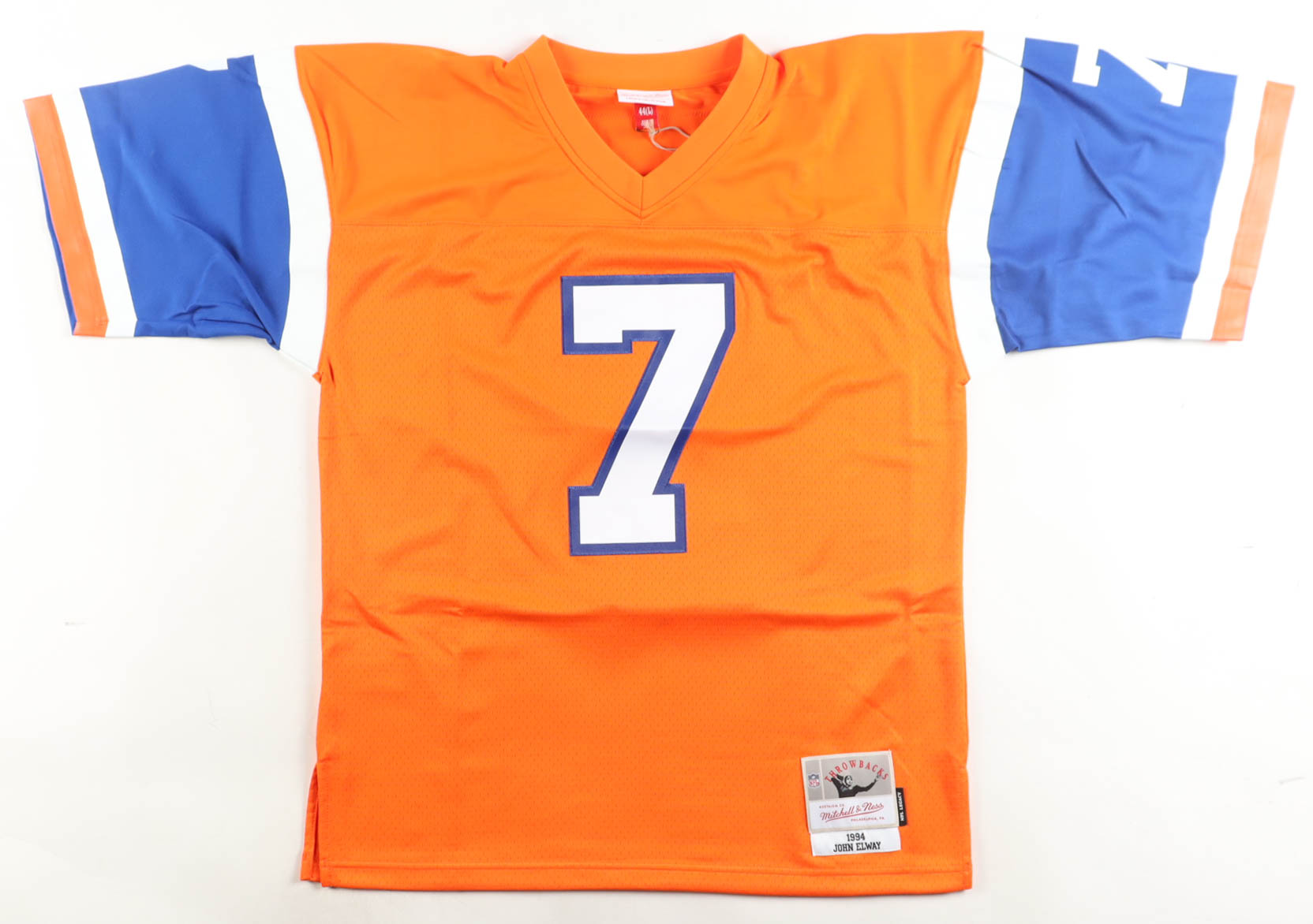 Mitchell & Ness jersey with everything sewn on, size 44 (L). Hand-signed by John Elway (Denver Broncos, HOF).