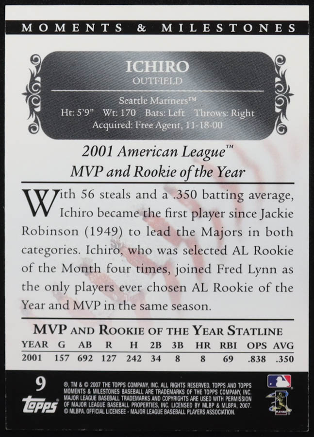 Ichiro Suzuki 2007 Topps Moments and Milestones #9-39 SB 39 #141/150