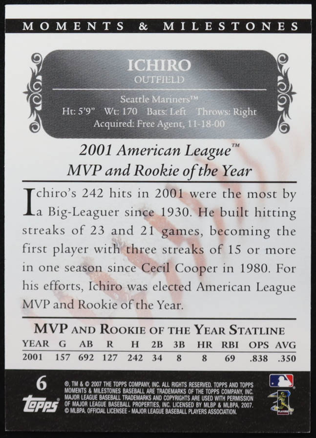 Ichiro Suzuki 2007 Topps Moments and Milestones Hit 63 #6-63 #027/150
