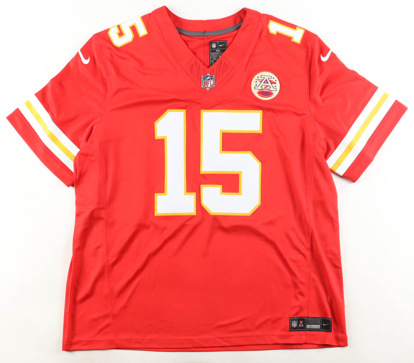 Nike jersey. Everything pressed on, size XXL. Hand-signed by Patrick Mahomes II (Kansas City Chiefs).