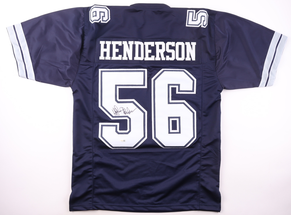 Custom jersey with everything sewn on, size XL. Hand-signed by Thomas Henderson.