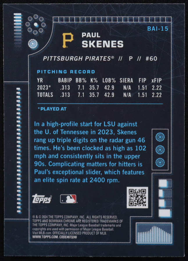 Paul Skenes 2024 Bowman Chrome Bowman AI #BAI15 RC