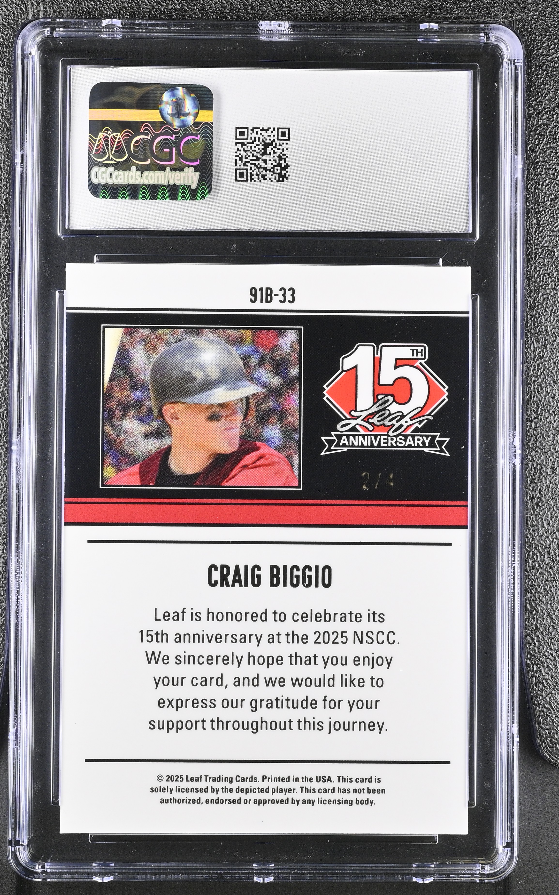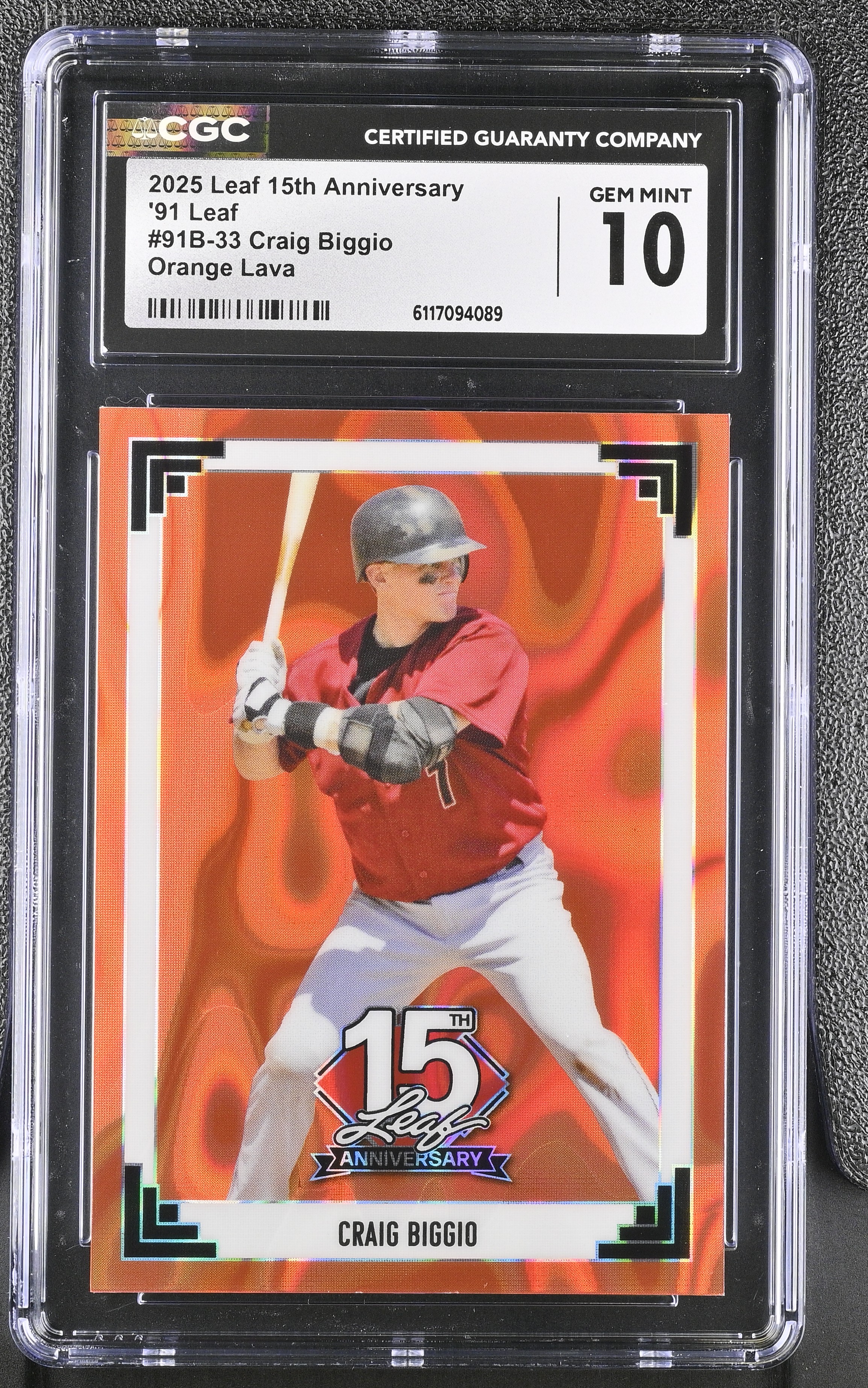 Craig Biggio 2025 Leaf 15th Anniversary '91 Leaf Orange Lava #91B33 #2/4 (CGC 10)
