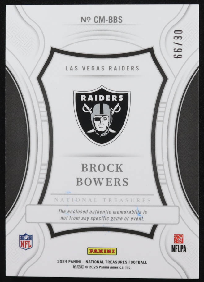 Brock Bowers 2024 Panini National Treasures Century Materials #49 RC #06/99