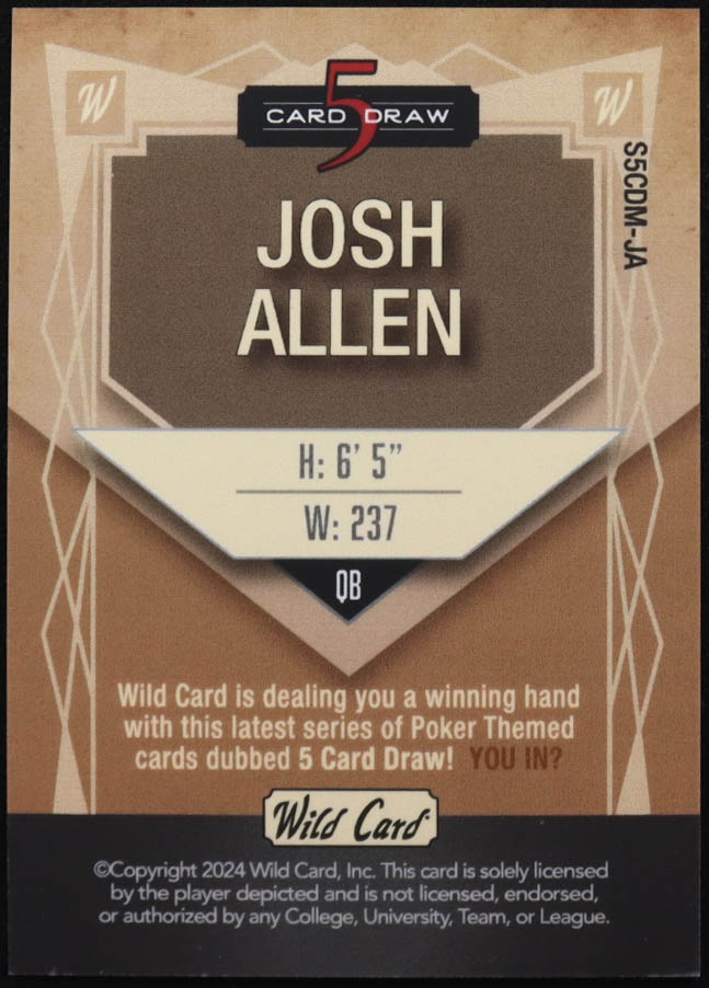 Josh Allen 2024 Wild Card 5 Card Draw Green Chips Green Foil #S5CDMJA #2/5