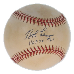 Bob Lemon Signed OAL Baseball Inscribed "HOF 76" (JSA)