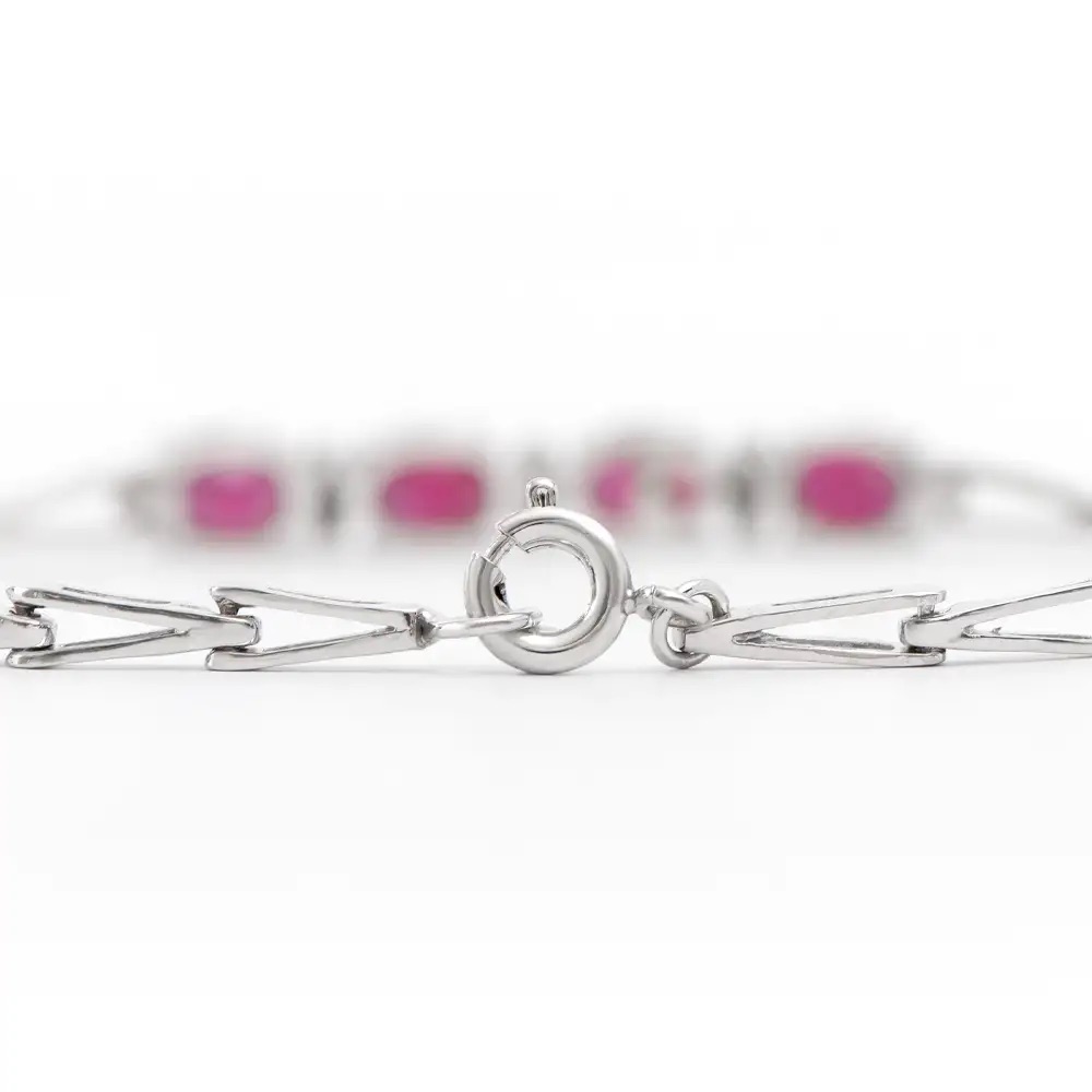 4.11 CTW Natural Ruby & Diamond Rhodium Plated Designer Bracelet Size 7.6 Inches (4.85 grams)