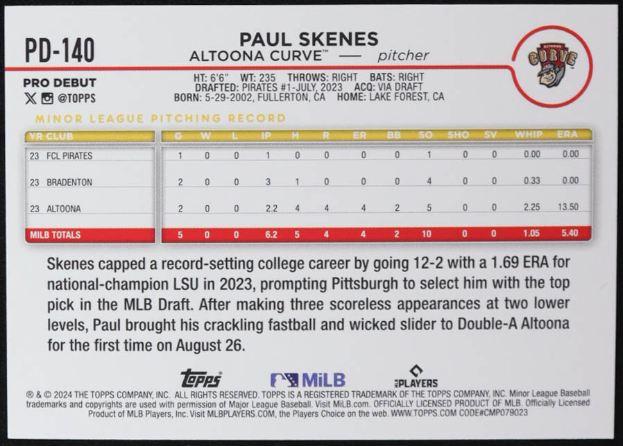Paul Skenes 2024 Topps Pro Debut #PD140 RC
