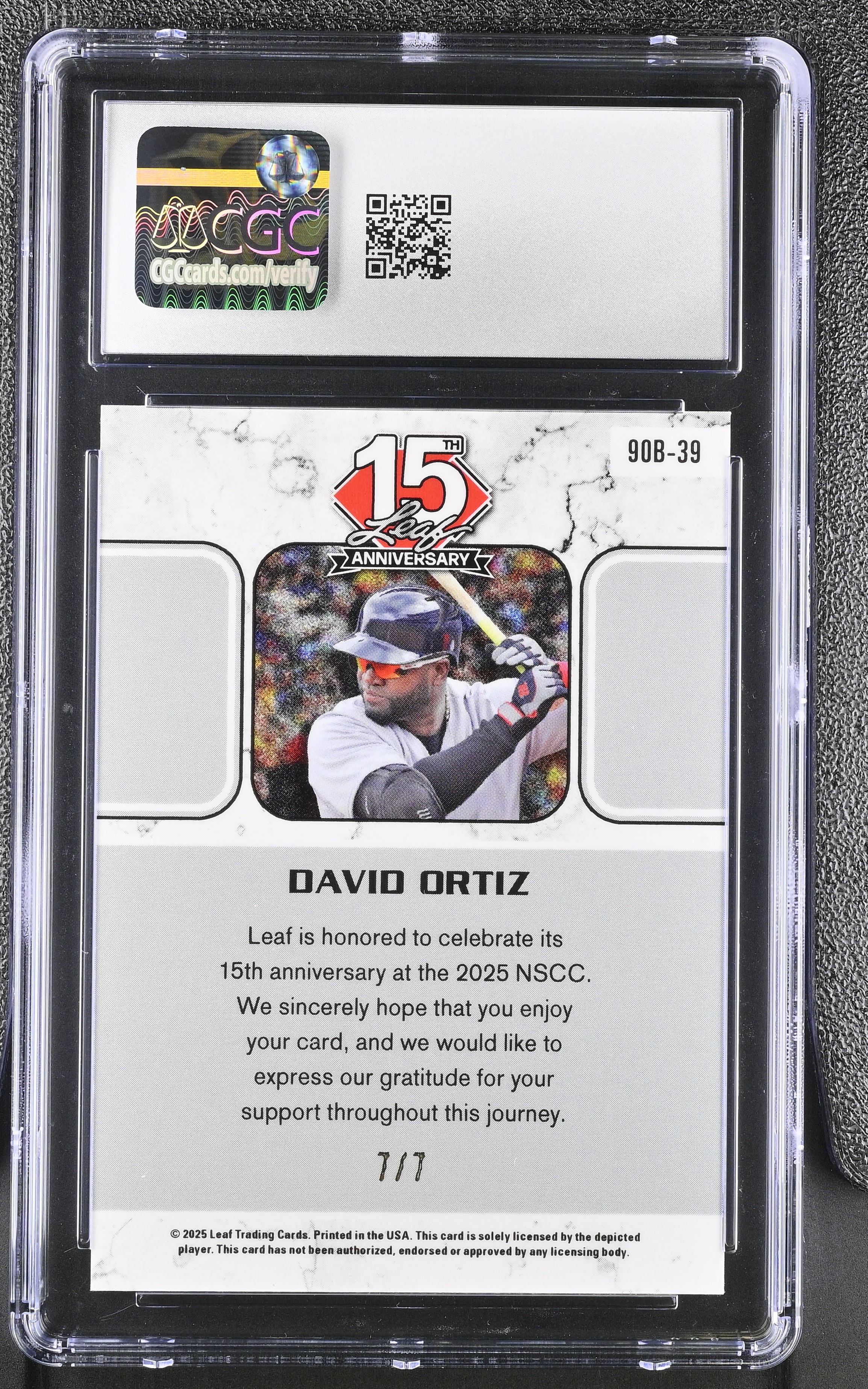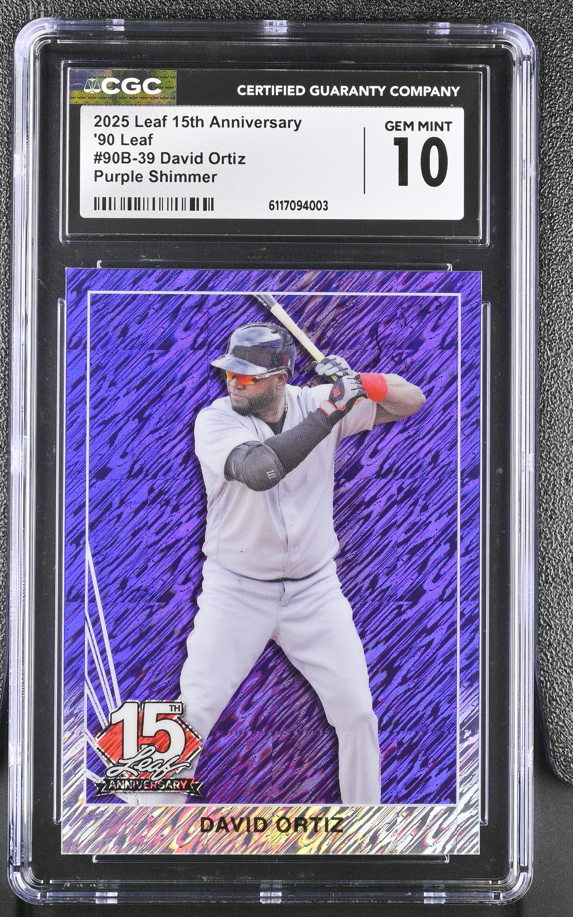 David Ortiz 2025 Leaf 15th Anniversary '90 Leaf Purple Shimmer #90B39 #7/7 (CGC 10)