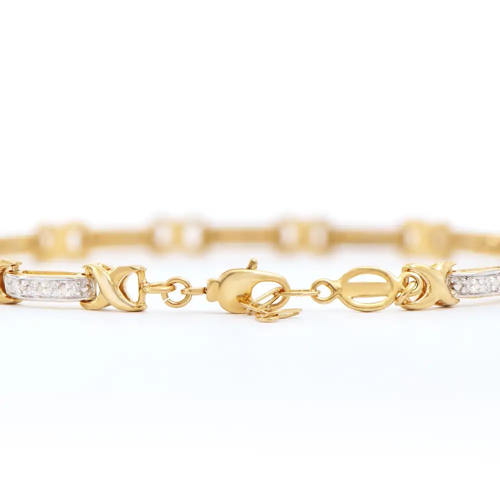 0.34 CTW Natural Diamonds 18K Gold Plated Designer Bracelet Size 8.2 Inches (9.15 grams)
