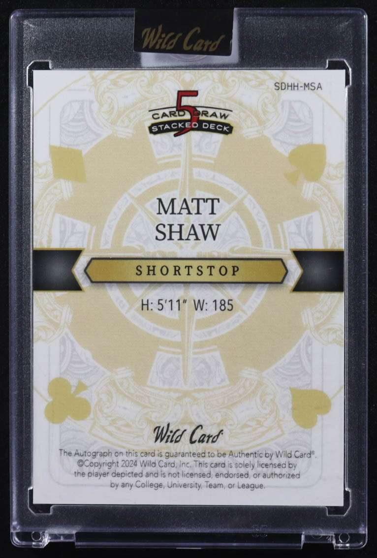 Matt Shaw 2024 Wild Card 5 Card Draw Stacked Deck Queen Hearts Green Foil Signatures #SDHHMSA #1/3 RC