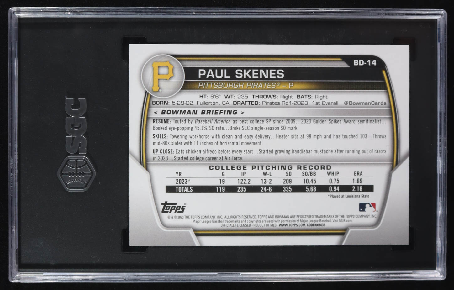 Paul Skenes 2023 Bowman Draft #BD14 (SGC 10)