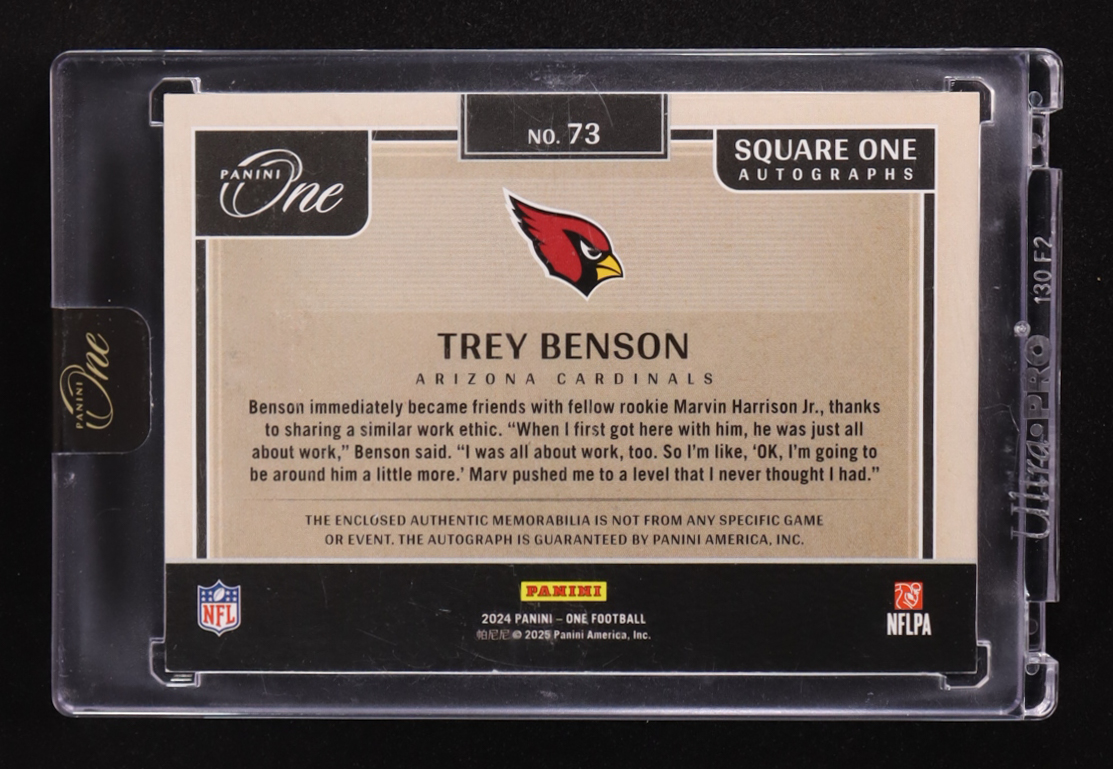 Trey Benson 2024 Panini One Square One Jersey Autograph #73 #77/99 RC