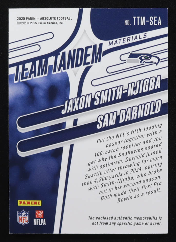 Jaxon Smith-Njigba / Sam Darnold 2025 Absolute Team Tandem Materials #4 #073/115