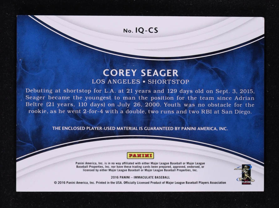 Corey Seager 2016 Immaculate Collection Immaculate Quads Memorabilia #7 #59/99 RC