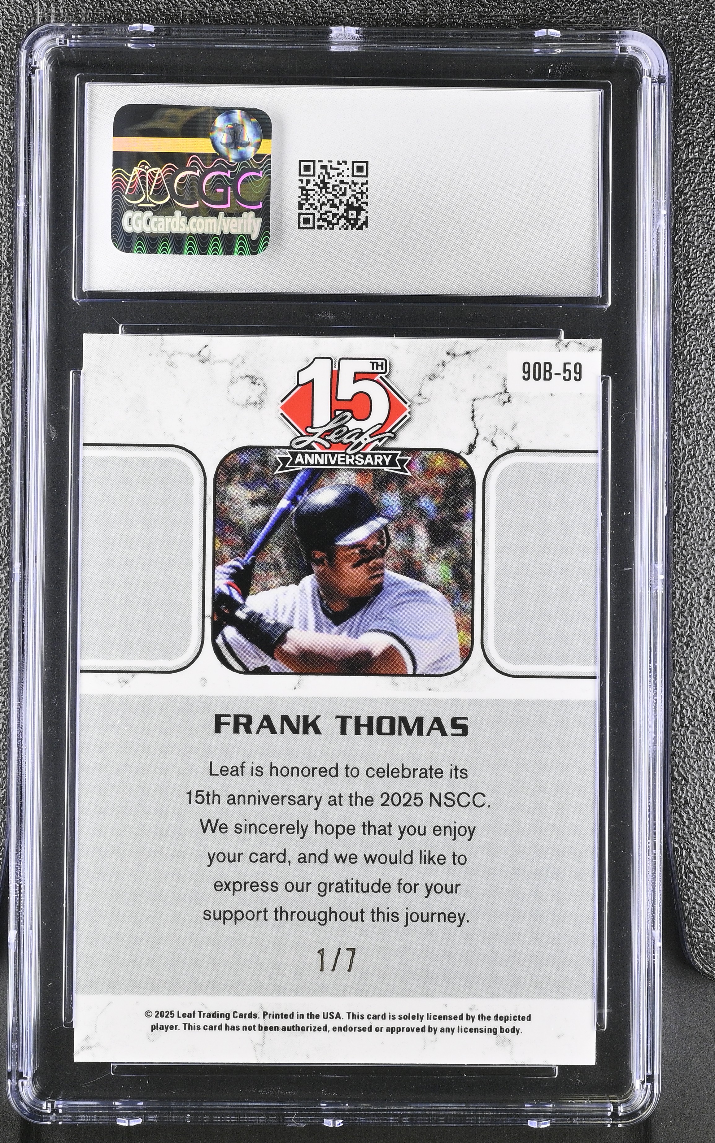 Frank Thomas 2025 Leaf 15th Anniversary '90 Leaf Purple Shimmer #90B59 #1/7 (CGC 10)
