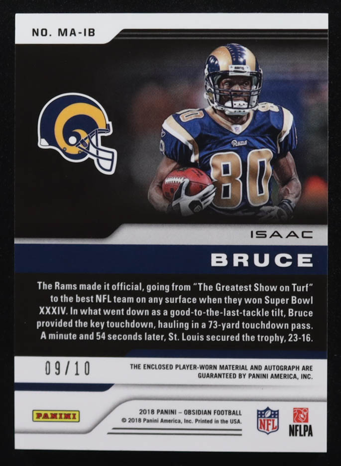 Isaac Bruce 2018 Panini Obsidian Matrix Material Autographs Electric Etch Yellow #4 #09/10