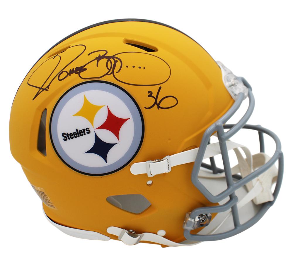 Riddell Pittsburgh Steelers full-size authentic on-field alternate speed helmet has been hand-signed by Jerome Bettis (HOF).