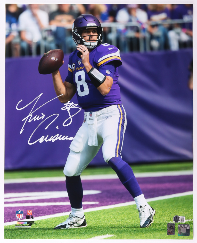 Photo measures 16” x 20” in size and has been hand-signed by Kirk Cousins (Minnesota Vikings).