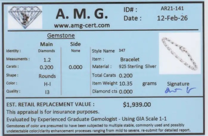 0.2 CTW Natural Diamonds Rhodium Plated Designer Bracelet 8 Inches | Estimated Value $1,939 (AMG)