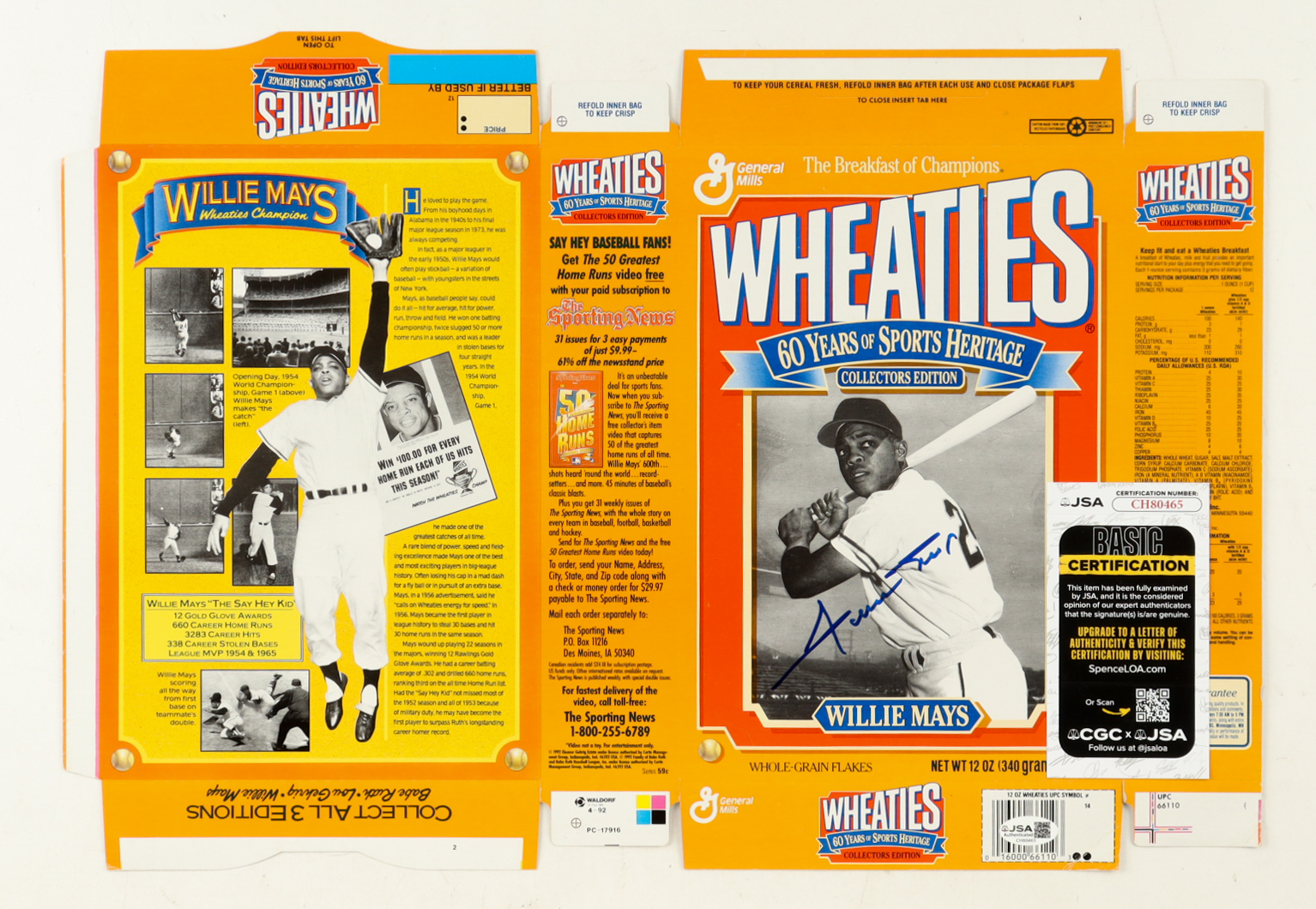 Willie Mays Signed Wheaties Cereal Box (JSA)