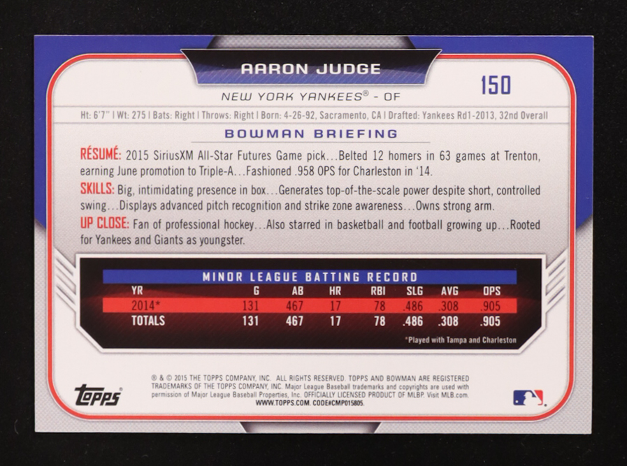 Aaron Judge 2015 Bowman Chrome Draft #150