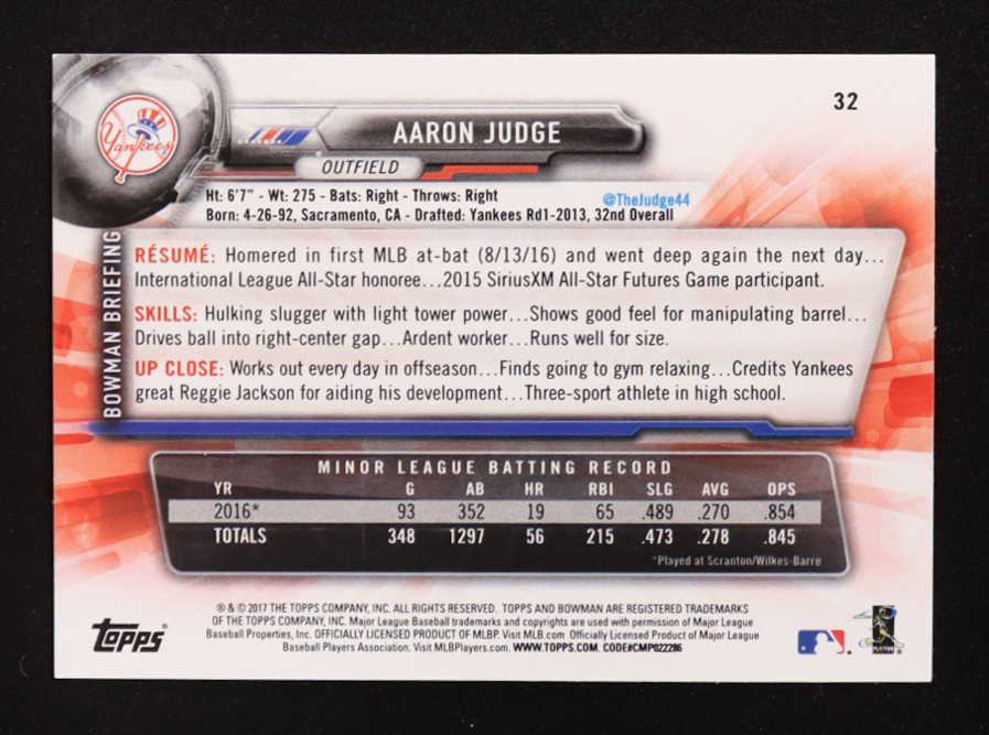 Aaron Judge 2017 Bowman #32 RC