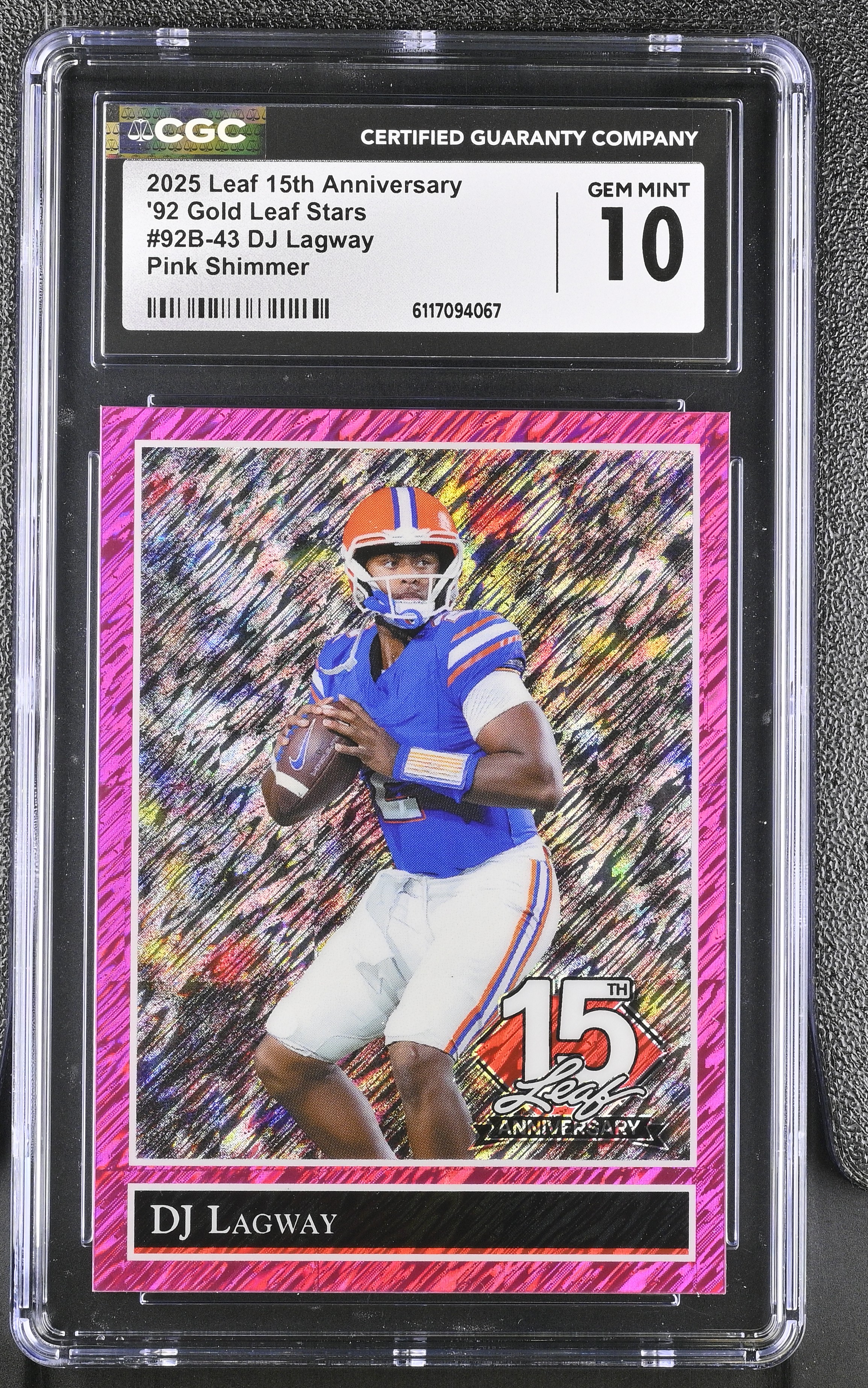 DJ Lagway 2025 Leaf 15th Anniversary '92 Gold Leaf Stars Pink Shimmer #92B43 RC #4/8 (CGC 10)