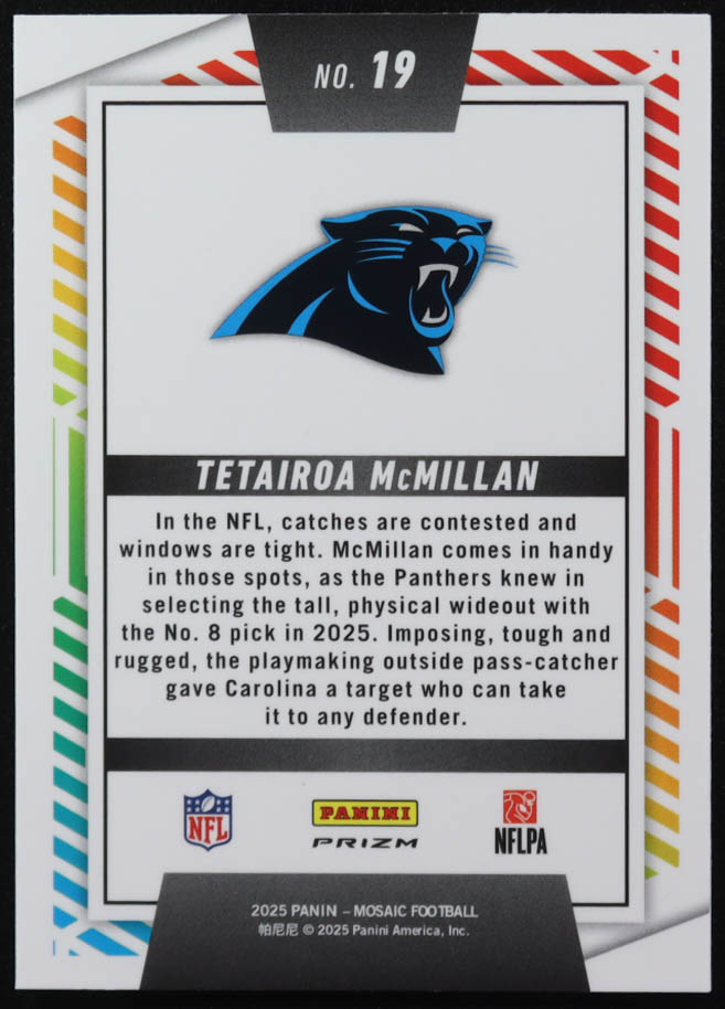 Tetairoa McMillan 2025 Panini Mosaic Men of Mastery No Huddle Silver #19 RC