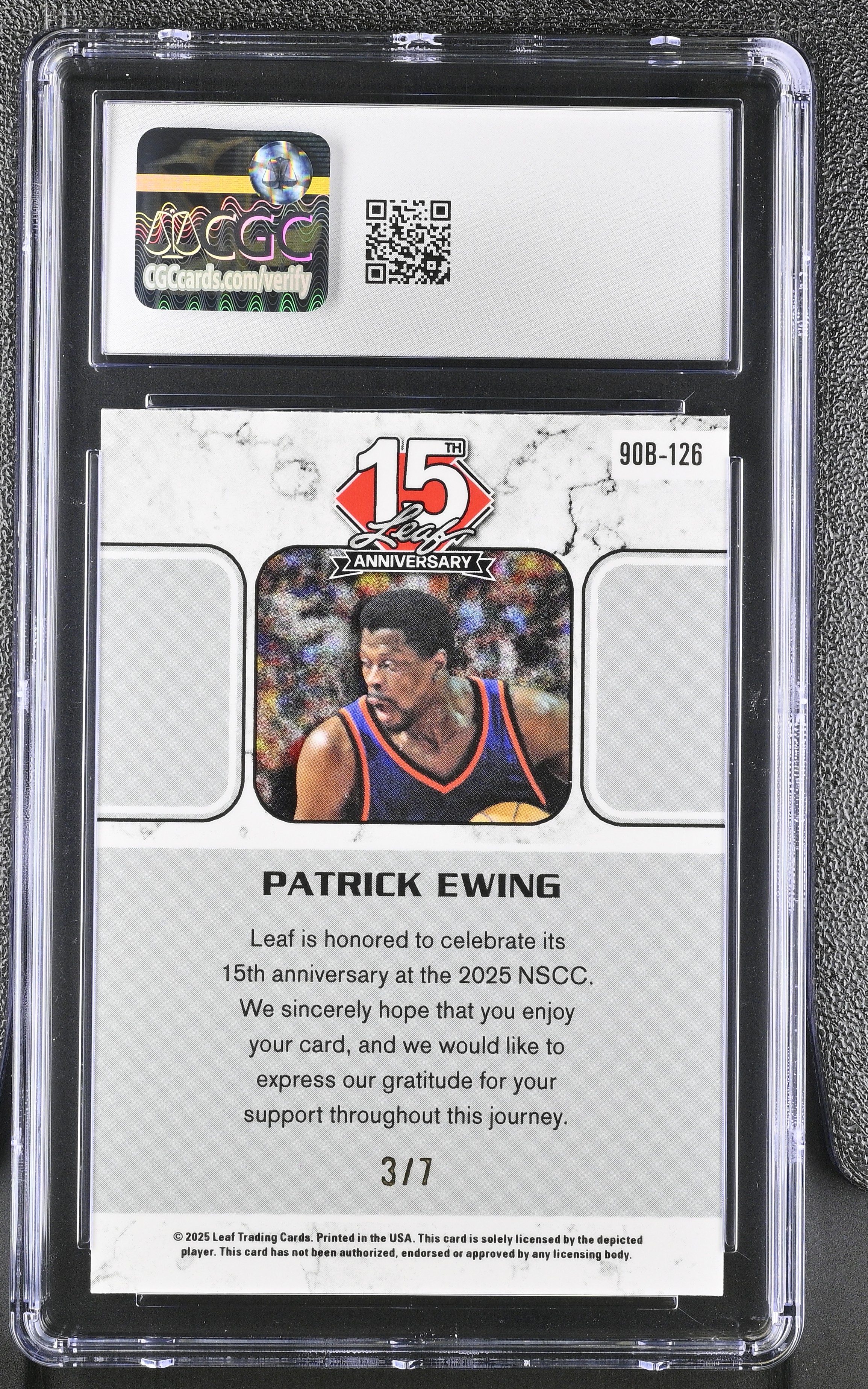 Patrick Ewing 2025 Leaf 15th Anniversary '90 Leaf Purple Shimmer #90B126 #3/7 (CGC 10)