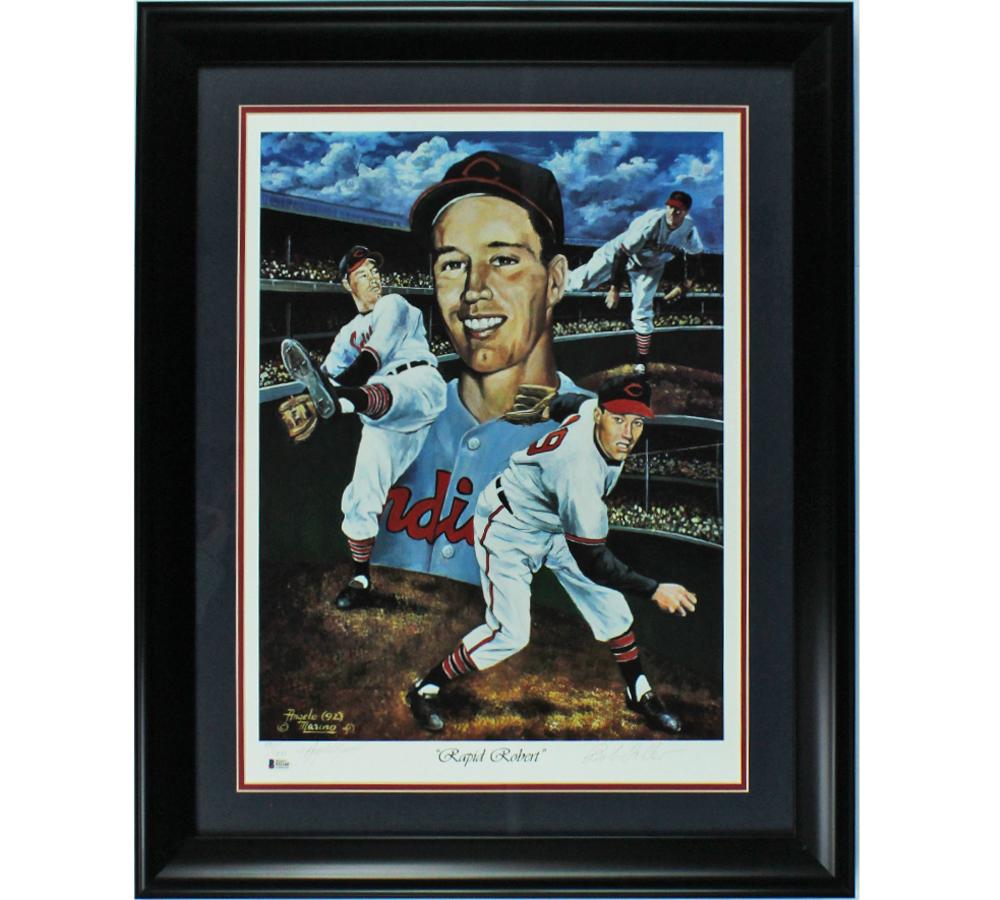 Bob Feller Signed LE Indians Custom Framed Rapid Robert Print (Beckett)