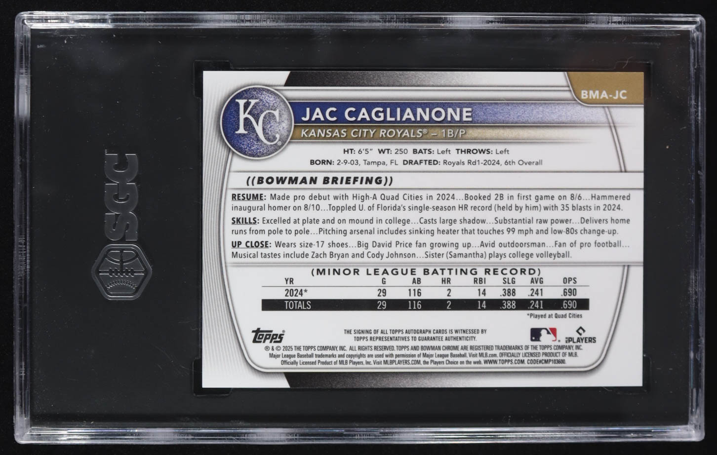 Jac Caglianone 2025 Bowman Chrome Mega Box Prospect Autographs #BMAJC RC (SGC 10 | Auto Grade SGC 10)