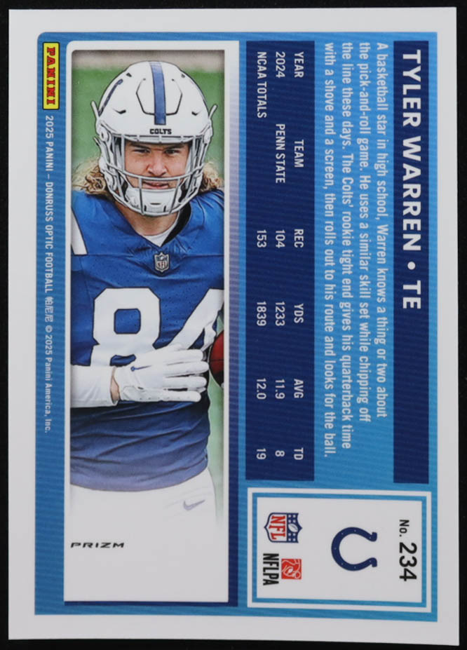 Tyler Warren 2025 Donruss Optic Purple Shock #234 RR RC