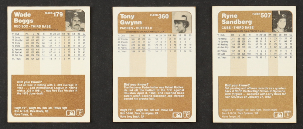 1983 Fleer Baseball Complete Set of (660) Cards with Tony Gwynn #360 RC, Ryne Sandberg #507 RC, Wade Boggs #179 RC, Cal Ripken #70