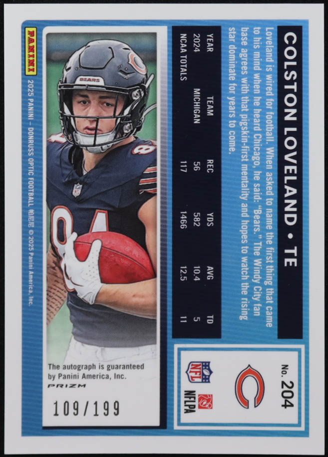 Colston Loveland 2025 Donruss Optic Rated Rookies Autographs Holo #204 #109/199 RR RC