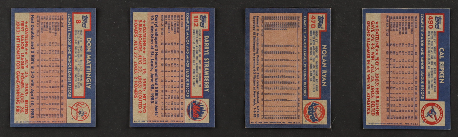 1984 Topps Baseball Complete Set of (792) Cards with Don Mattingly #8 RC, Cal Ripken #490, Darryl Strawberry #182 RC, Nolan Ryan #470
