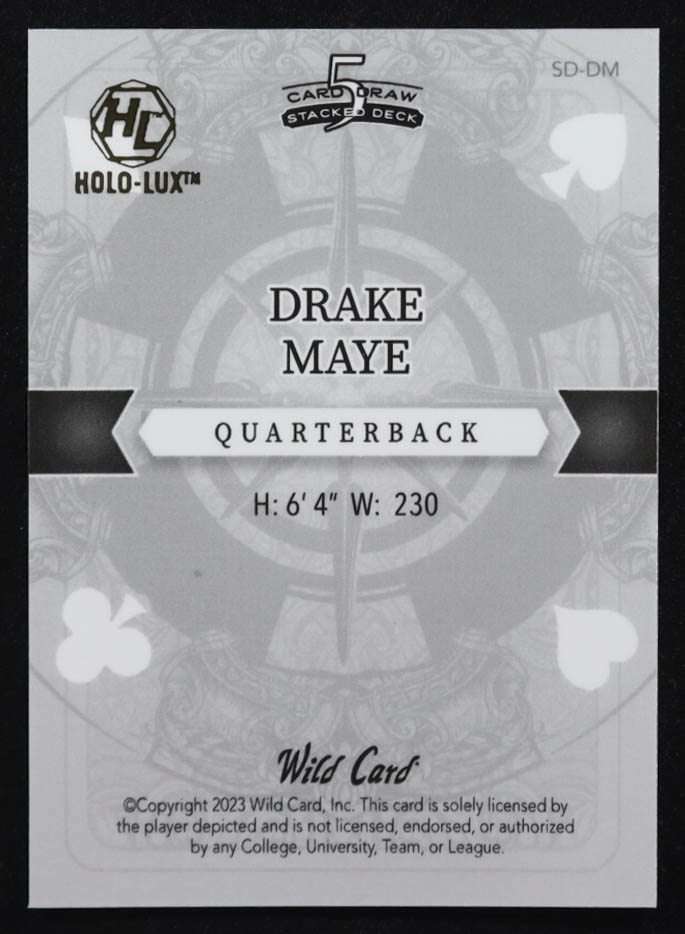 Drake Maye 2023 Wild Card 5 Card Draw Stacked Deck Ace of Clubs Gold Shock #DM RC #2/5