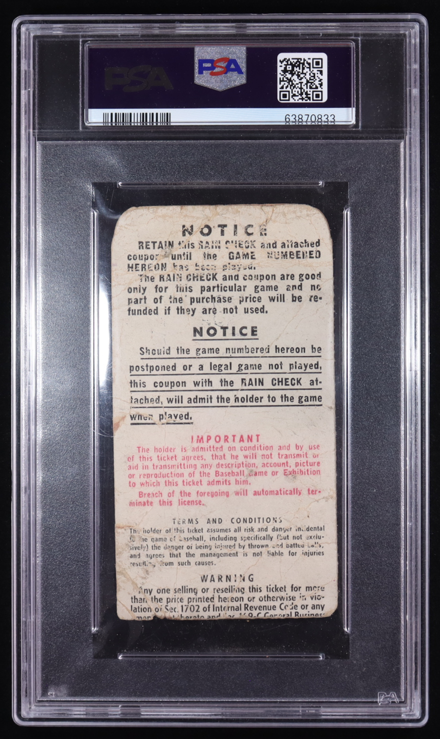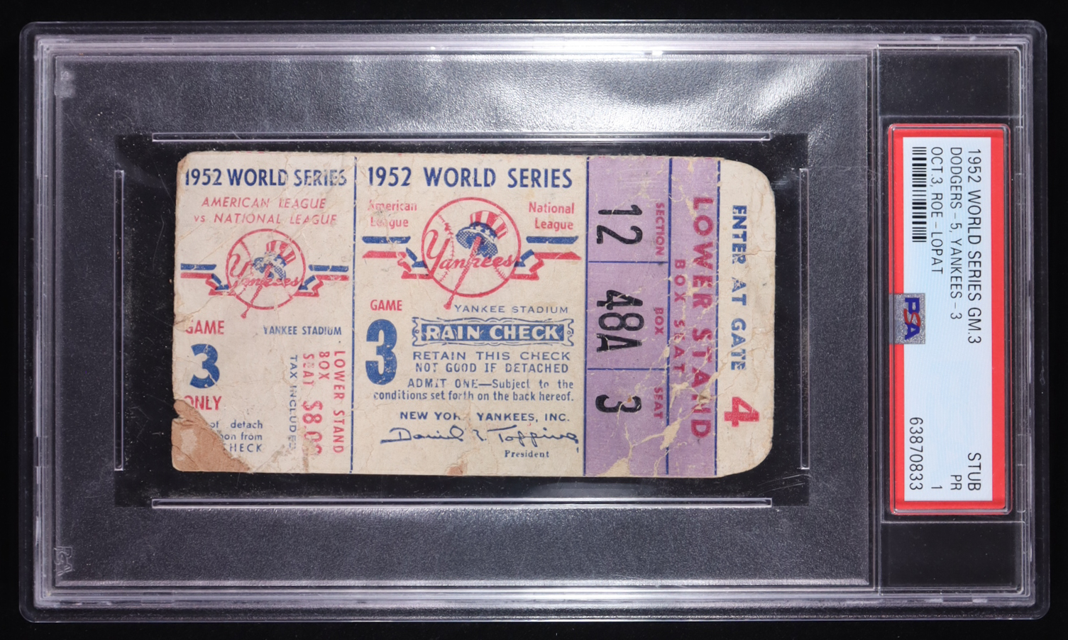 1952 World Series Game 3 Ticket Stub (PSA 1)