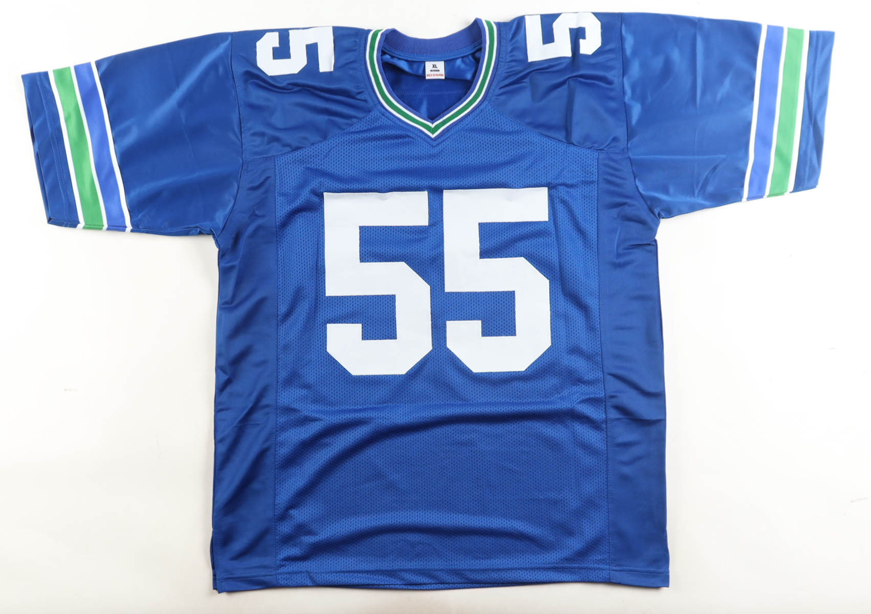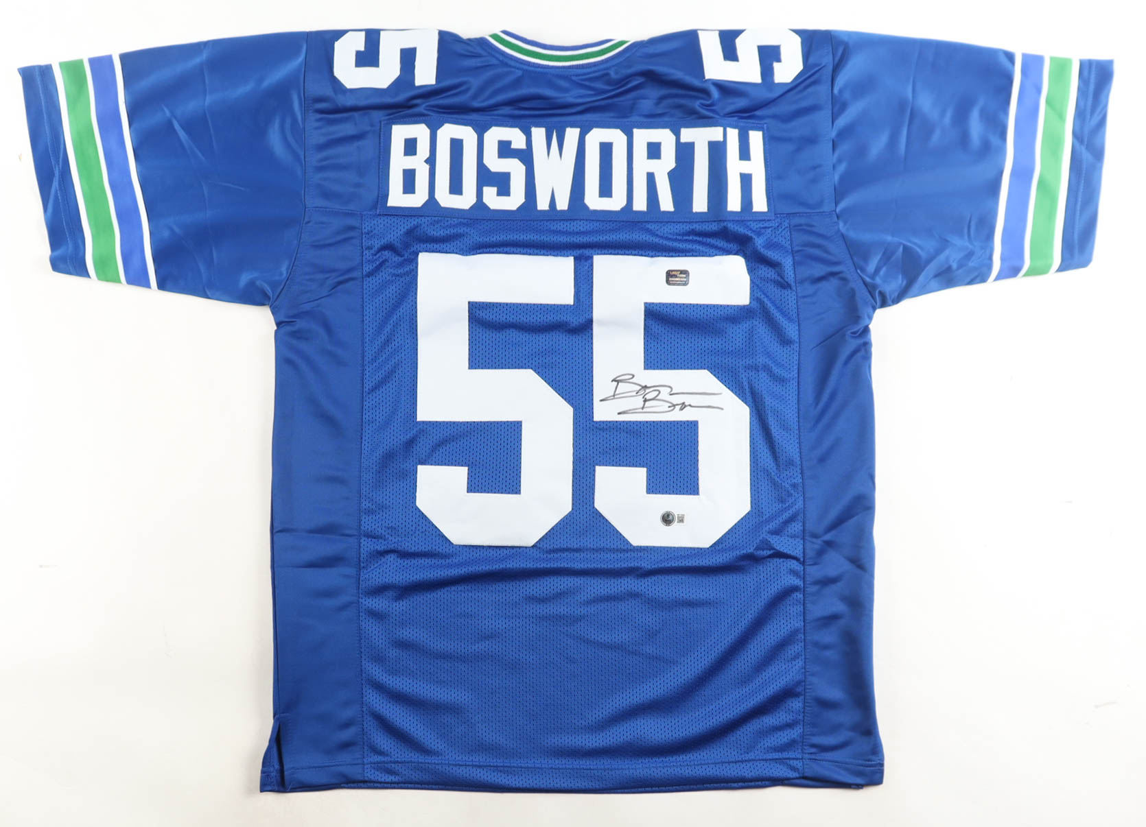 Custom jersey with everything sewn on, size XL. Hand-signed by Brian Bosworth.