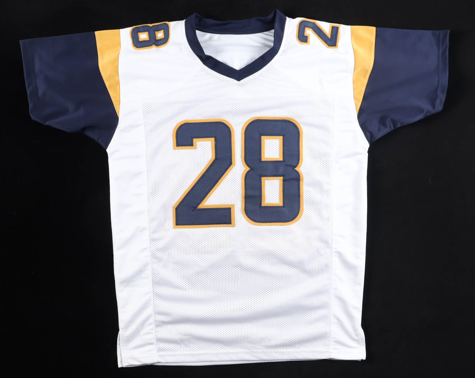 Custom jersey with everything sewn on, size XL. Hand-signed by Marshall Faulk (HOF). Please note, there is staining on the front of the jersey. See photos regarding the condition of the item.