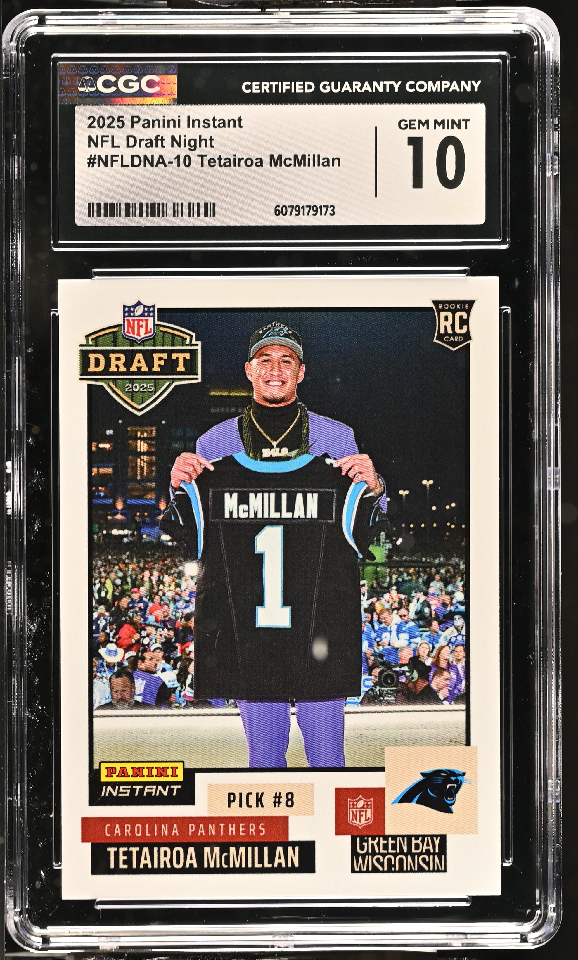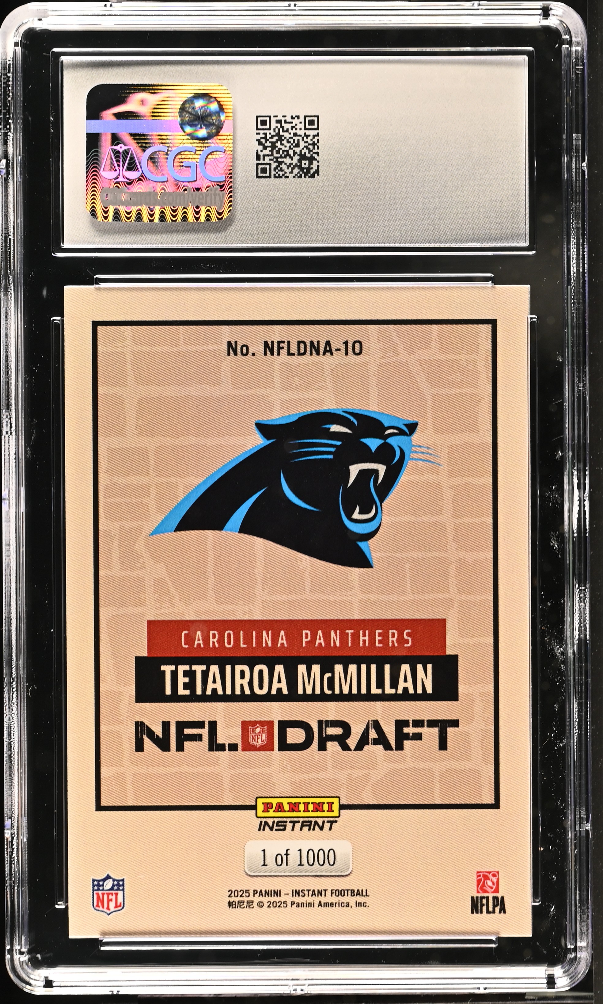 Tetairoa McMillan 2025 Panini Instant NFL Draft Night #NFLDNA-10 RC #1/1000 (CGC 10)
