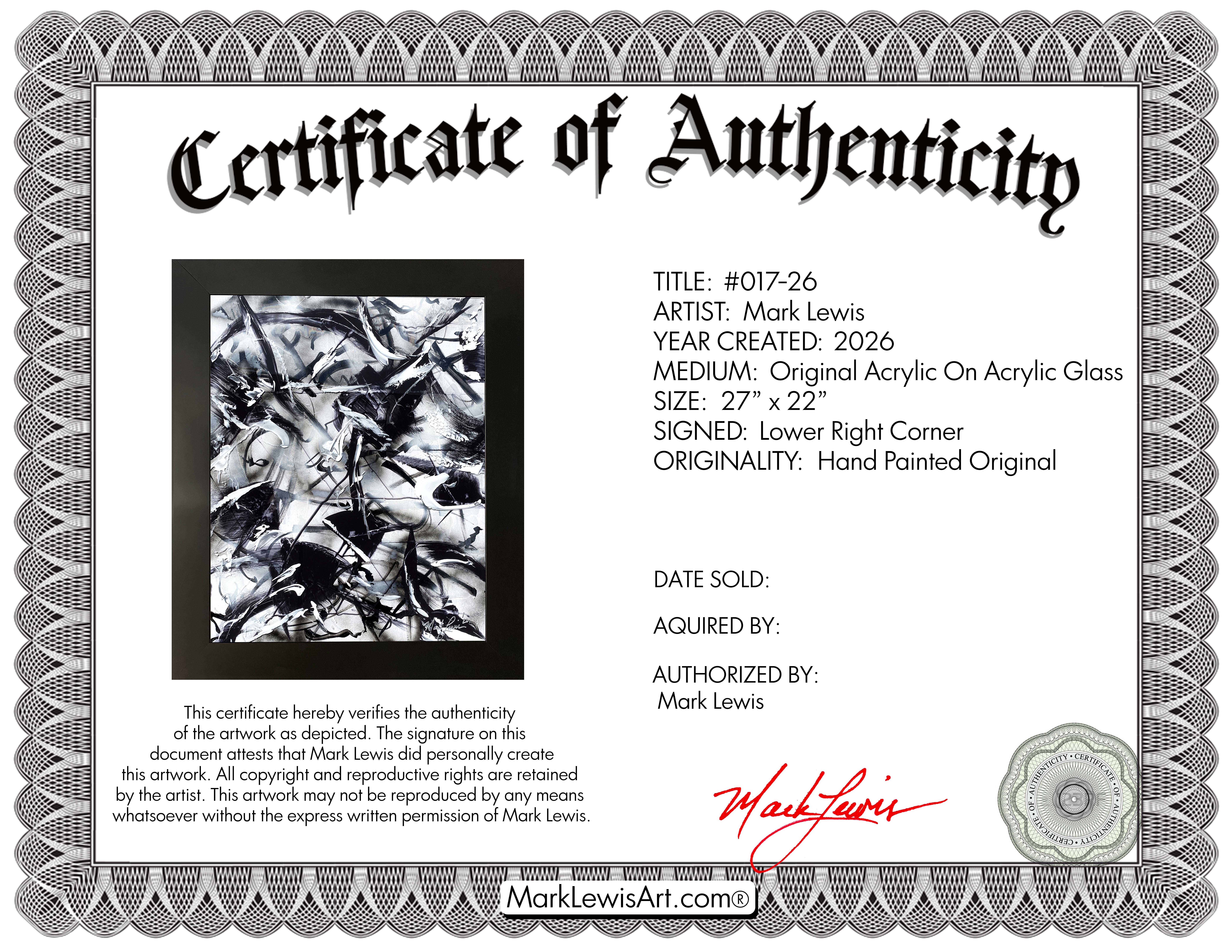 Mark Lewis Original Custom Framed Abstract Painting On Glass 017-26 (Lewis)